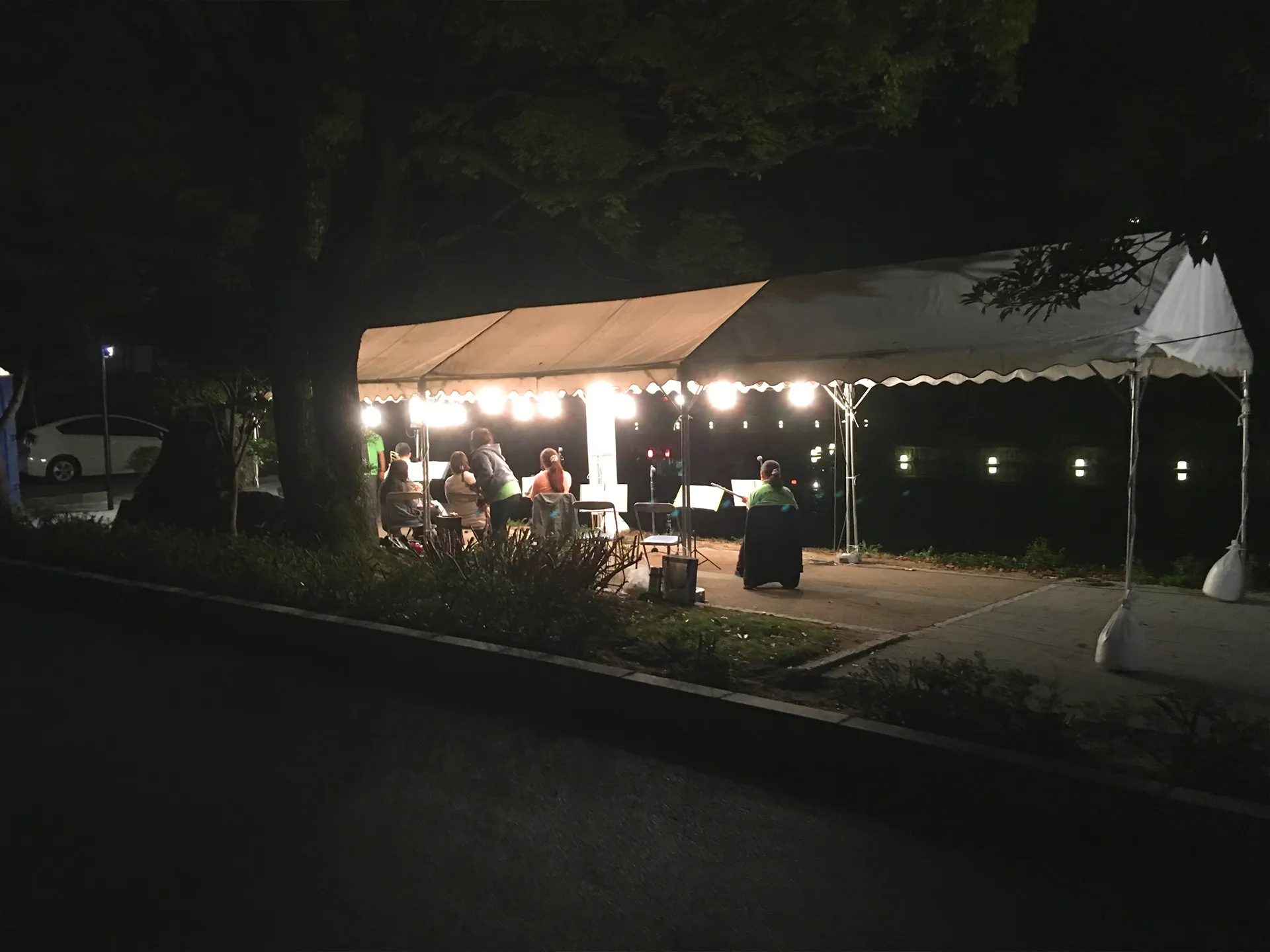市内の遊歩道に設置されたステージに待機して、船が流れてきたら「待ちぼうけ」を演奏をしておもてなしをしました^ ^