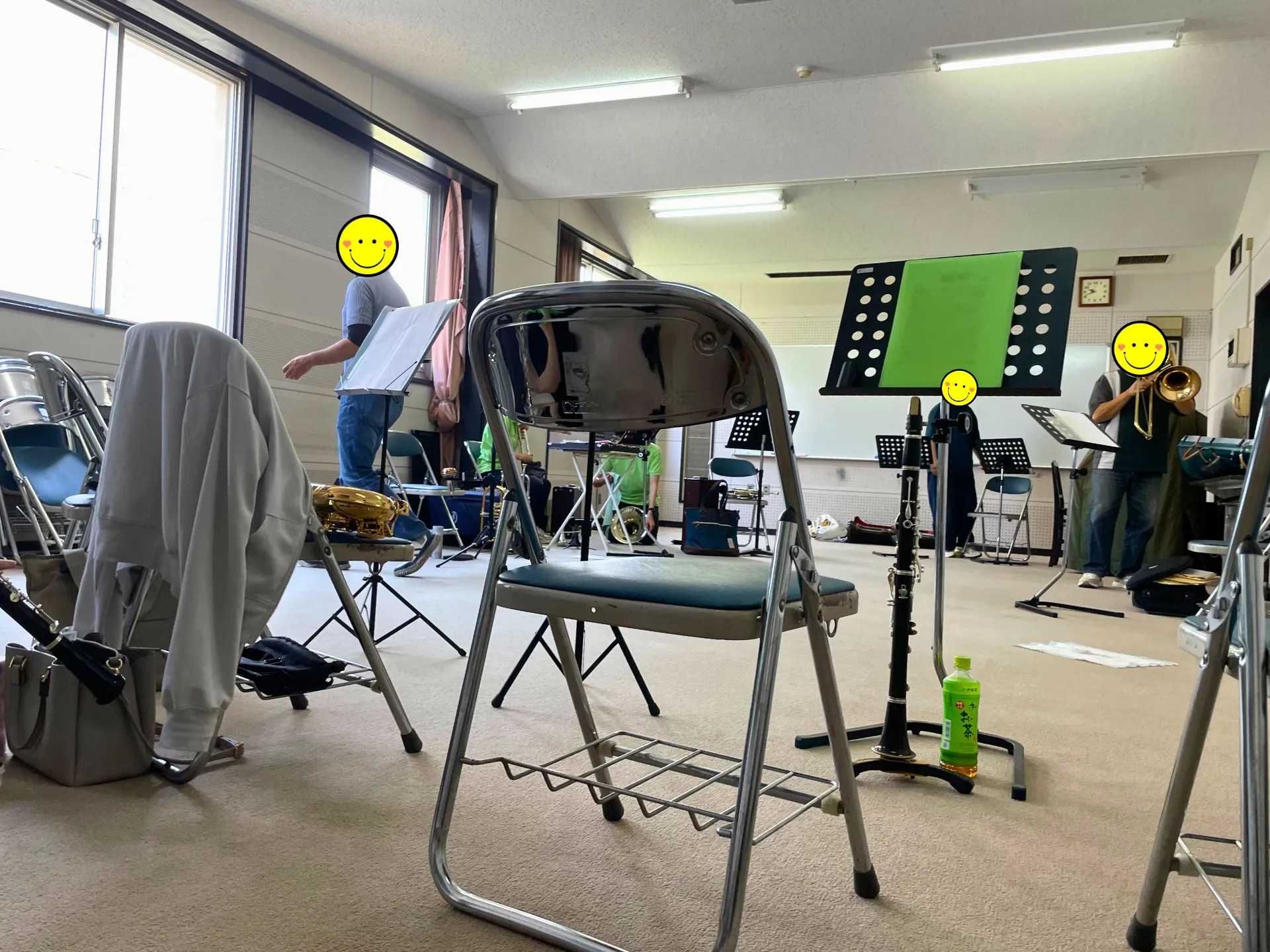 フルート、クラリネット、サックス、トランペット、ホルン、トロンボーン、チューバ、そしてゲストのパーカッション奏者を含む10数名のメンバーが集まり、ポロシャツとジーンズのカジュアルな装いで演奏を披露しました。