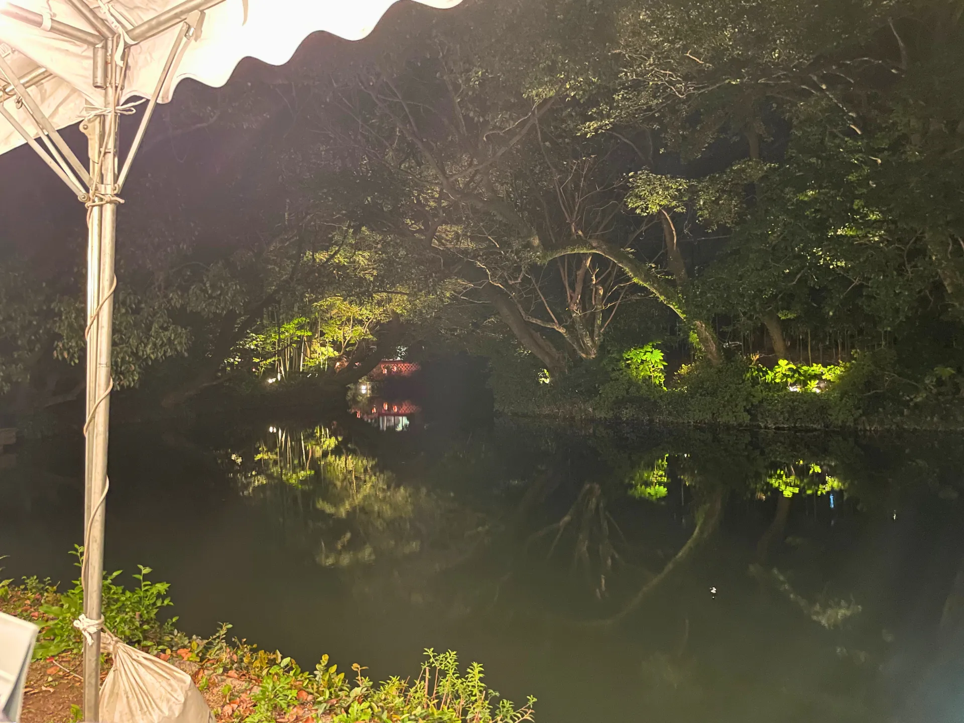 夜のお堀を色鮮やかな提灯で飾られった船がゆっくりと進む…。